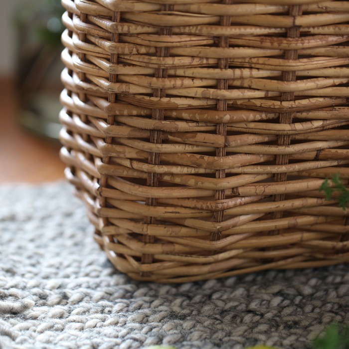 幅広の皮付きラタンを編み込んで作られているので、丈夫で軽く、水に強く腐りにくいという特徴があり、植物を植えるにぴったりの素材です。