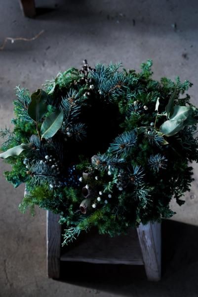 タネニハfarmで採れた針葉樹を中心に、フレッシュな花材を使って作ったChristmas Wreathになります。
