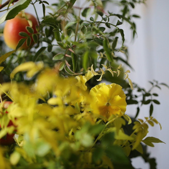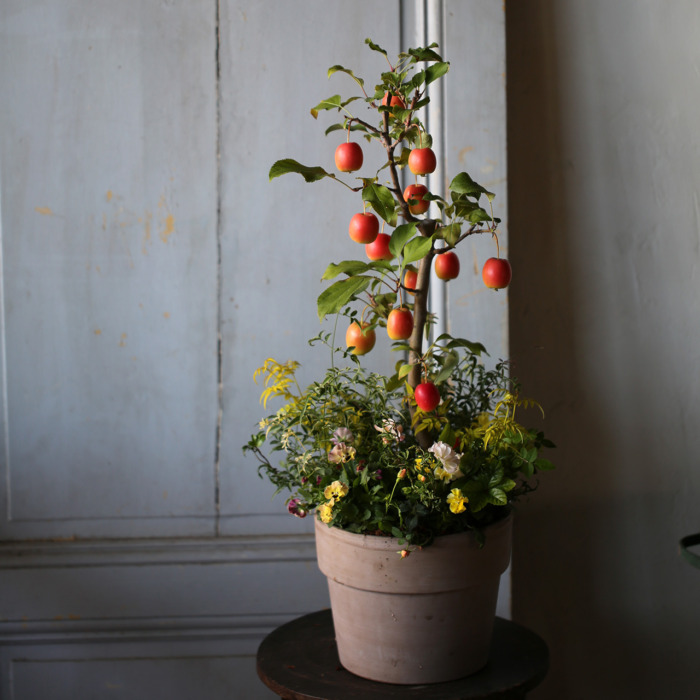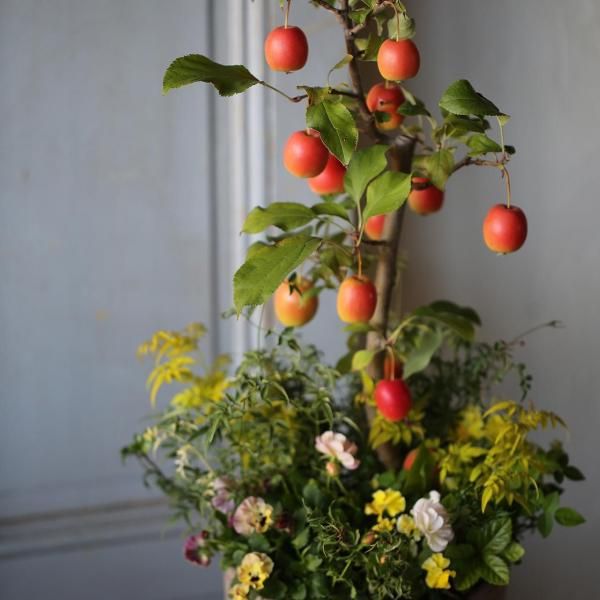 姫林檎(長寿紅)、ビオラ、ミニバラ、ハゴロモジャスミン他